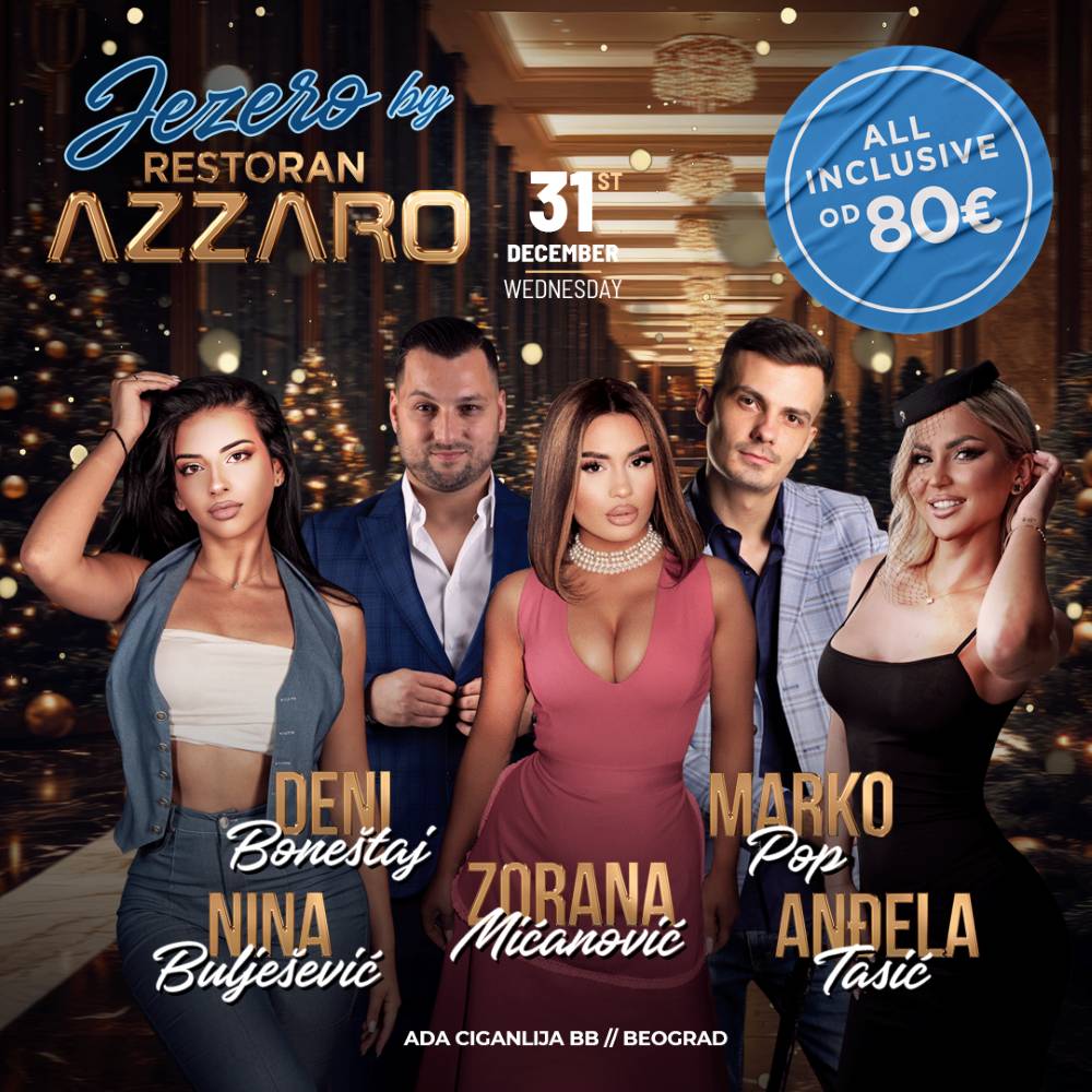 Doček Nove godine 2026. u restoranu Jezero by Azzaro predstavlja vrhunsku priliku za sve ljubitelje fine dining iskustava. Ovaj luksuzni restoran nudi jedinstvenu atmosferu i savršenu uslugu, idealnu za proslavu najvažnije noći u godini. Uživajte u nastupima poznatih izvođača kao što su Zorana Mićanović, Deni Boneštaj, Anđela Tasić, Marko Pop i Nina Bulješević, koji će vas zabavljati tokom cele noći.