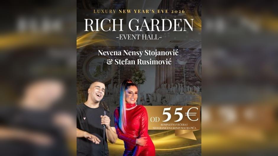 Doček Nove godine 2026. u restoranu Rich Garden je savršena prilika da doživite vrhunski fine dining u elegantnom ambijentu. Ovaj restoran nudi bogatu večeru koja će zadovoljiti i najizbirljivije gurmane. Uživajte u specijalitetima pripremljenim od najkvalitetnijih sastojaka, dok vas zabavljaju talentovani izvođači Nevena Nensy Stojanović i Stefan Rusimović.